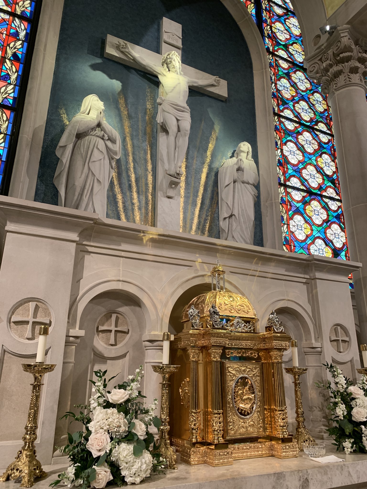 A smaller brocade cover is used on top of this if it is desired that the altar decoration reflect the liturgical season.